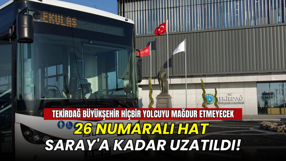 Tekirdağ Otopark Ulaşım A.Ş. (TEKULAŞ), Tekirdağ 1. İdare Mahkemesi kararı doğrultusunda hizmeti sonlandırılan 80 numaralı hattın ardından yeni bir düzenlemeye gitti. Yapılan açıklamada, vatandaşların ulaşımda mağduriyet yaşamaması amacıyla 26 numaralı hattın güzergâhının Saray’a kadar uzatıldığı bildirildi.